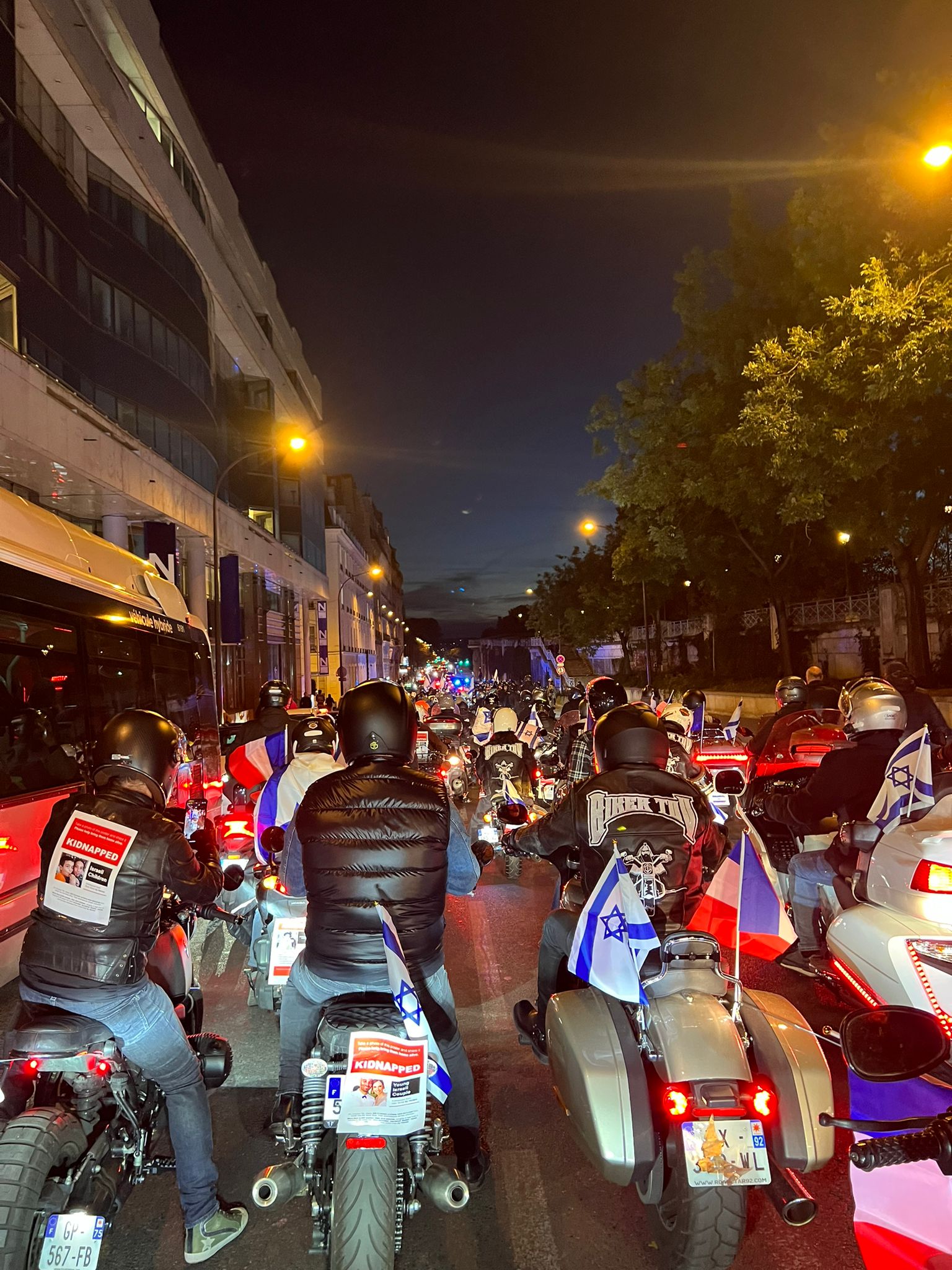 Biker run contre la barbarie Le jeudi 19 Octobre, les runners font le tour de Paris pour demander la libération immédiate de tous les otages du hamas.