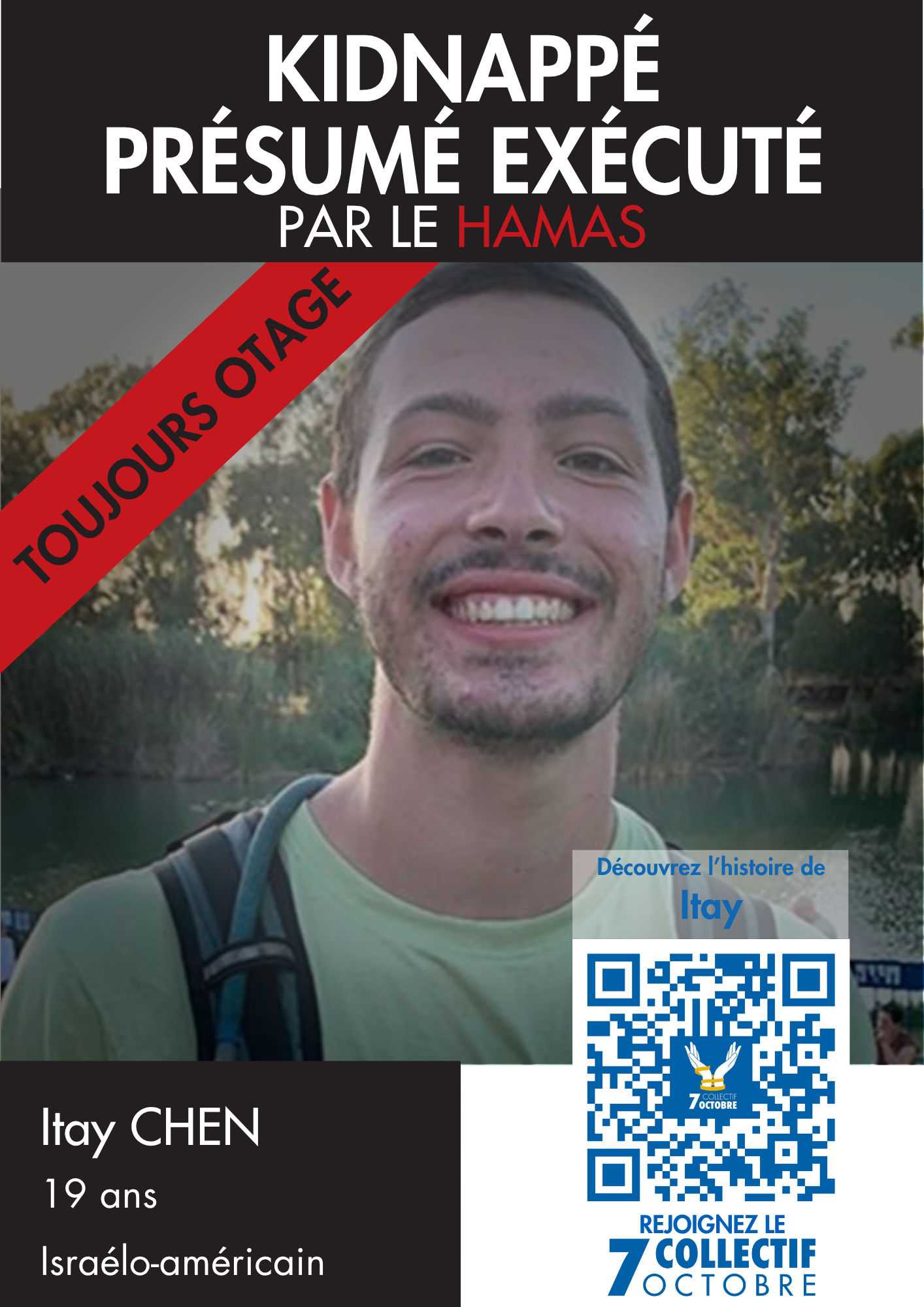Je m’appelle Itay Chen, j’ai 19 ans et je suis originaire de Netanya, en Israël. Je suis le fils de Ruby et Hagit Chen. Mon père, Ruby, est né à Brooklyn, New York, et ma famille possède la double nationalité israélo américaine. Je suis le deuxième de trois enfants, avec un frère aîné, Roy, âgé de 22 ans, et un frère cadet, Alon, âgé de 13 ans. Ma famille réside dans le quartier de Poleg à Netanya, près de la mer, où j’ai grandi dans un environnement chaleureux et aimant.