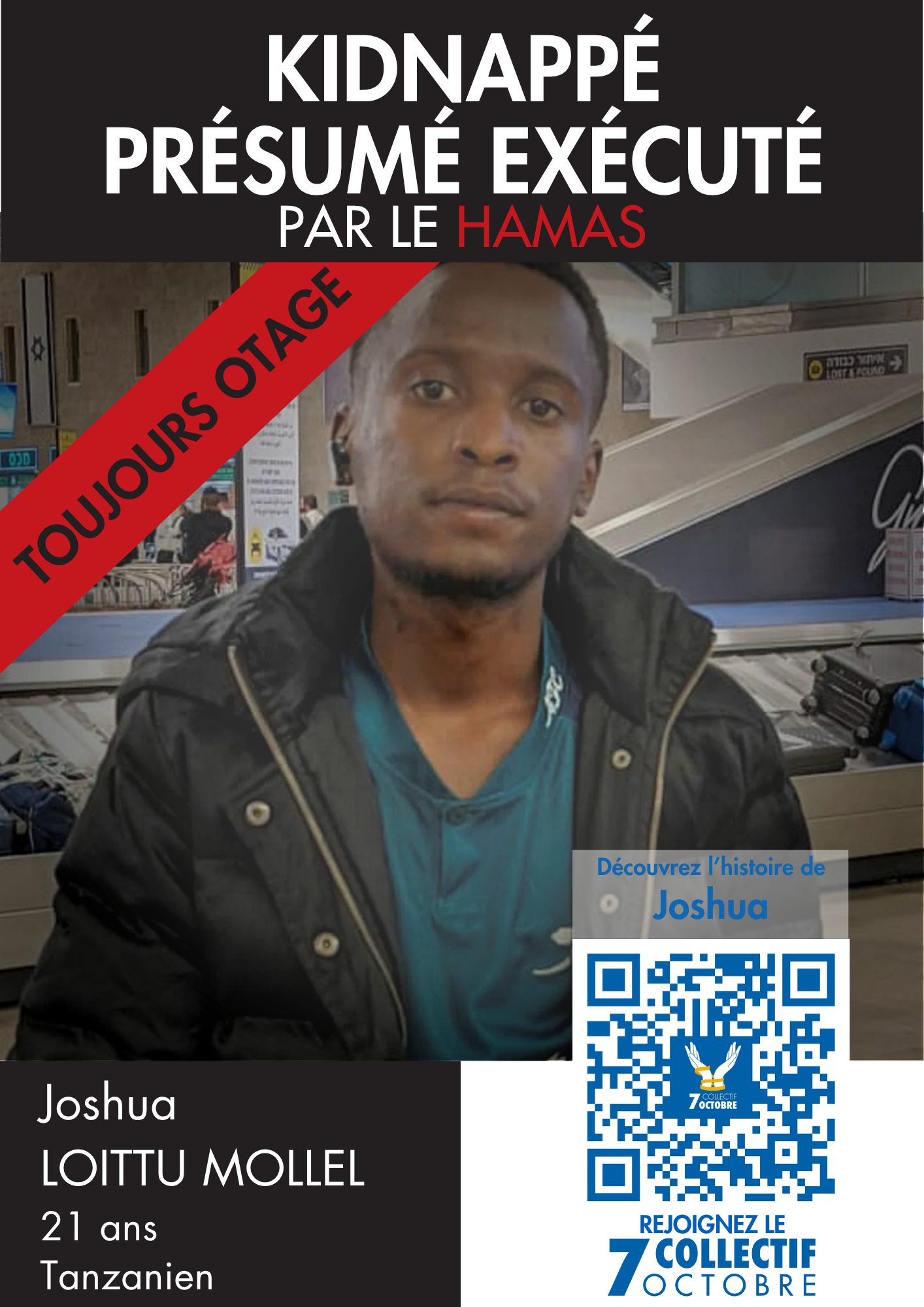 Pendant des semaines, ma famille en Tanzanie garde espoir. Mon père, Loitu, se rend en Israël pour demander des nouvelles, pour retrouver la trace de son fils. Le 13 décembre 2023, les autorités israéliennes et tanzaniennes confirment ma mort le 7 octobre et annoncent que ma dépouille est toujours retenue à Gaza. Mon père dit : « Joshua rêvait de faire pousser la vie. Il a trouvé la mort au milieu des champs. »