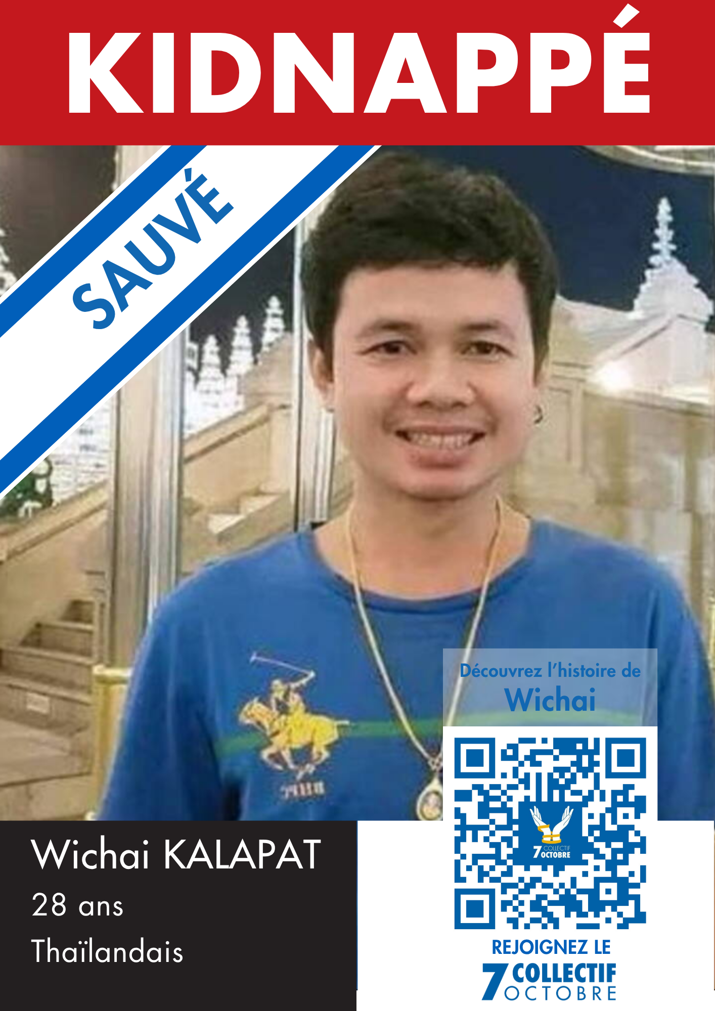 Originaire du nord est de Nong Bua Lam Phu en Thaïlande, Wichai Kalapat, 28 ans, avait quitté son pays natal il y a cinq ans, animé par l’espoir d’une vie meilleure en Israël. Travaillant sans relâche dans un kibboutz situé à la frontière de Gaza, il s’évertuait à gagner suffisamment d’argent pour soutenir sa famille restée en Thaïlande. Un avenir radieux se dessinait pour lui, avec des projets de mariage avec sa fiancée Kittiya pour l’année prochaine.