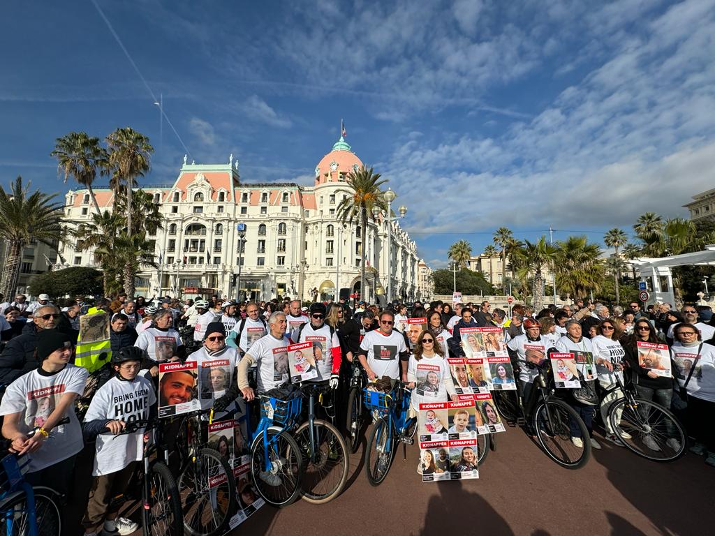 Run vélo à Nice pour les 100 jours Le 14 janvier 2024, pour les 100 jours de captivité des otages entre les mains du Hamas, les niçois se sont retrouvés pour un run en vélo afin de visibiliser les visages des otages.
